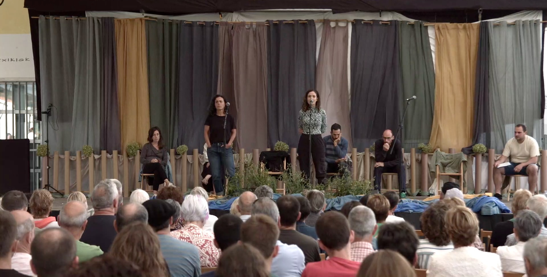 Etorkizuneko gizarte solidarioagoa eta konprometituagoa eraikitzeko nahia lantzen da, indibidualismotik kolektibora jauzia eginez: irabazi-galdu, ona-txarra, lehia-jolasa, erori-altxa, norbera-bestea, laguntasuna, taldea, bestearekiko errespetua, zaintza…Bertsoak, koplak eta beste hainbat baliabide eszeniko tartekatzen dira obra dinamiko eta jostari honetan. Zuzendaria: Iraitz Lizarraga. Antzezleak: Maren Basterretxea eta Uxue Alkorta